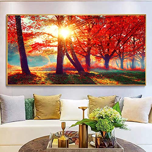Instarry DIY 5D Diamond Painting Quadri Grandi Dimensioni Foresta di Aceri Rossi Decorazioni Murali 150x60 cm