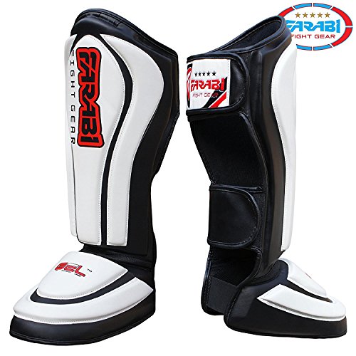 Shin Pads Shin Instep MMA UFC Kick Muay Thai Boxing Kickboxing Training Pads Gel by Farabi (L)