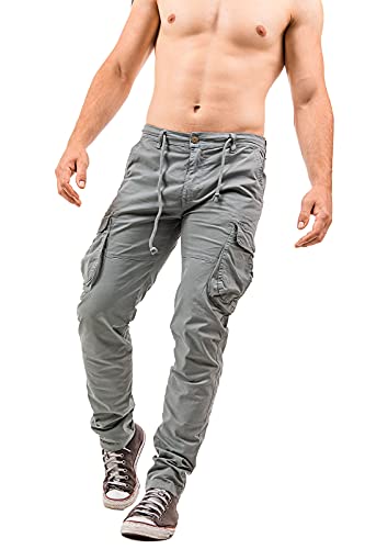 Instinct I Pantaloni Uomo Cargo con Tasche Laterali Tasconi Jeans Slim Fit Elastico alle Caviglie Militari Zip (44, Grigio_Y-308)