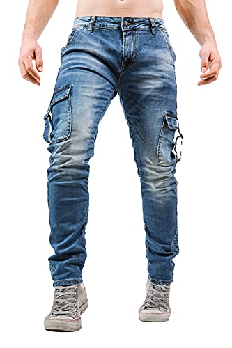 Instinct I Pantaloni Uomo Jeans con Tasche Laterali, Jeans Cargo Uomo Tasche Laterali Tasconi (42, Blu J-983)