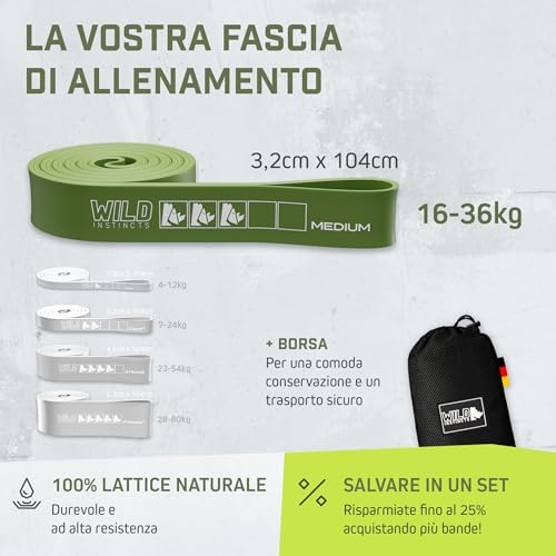 Wild Instincts Pull-Up Bands | con tasca | Diversi livelli di resistenza | Fascia di resistenza | Fascia fitness con guida web per allenamento | Fascia di allenamento per Calisthenics (MEDIUM)