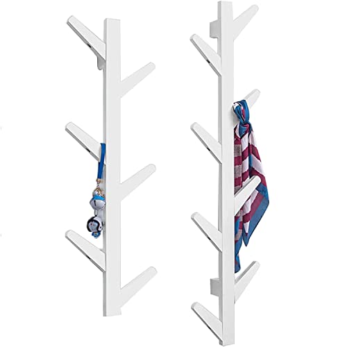 INSTUS Appendiabiti da parete in legno a forma di albero, per soggiorno, camera da letto, ingresso, corridoio, sala da pranzo (bianco, 8 ganci)