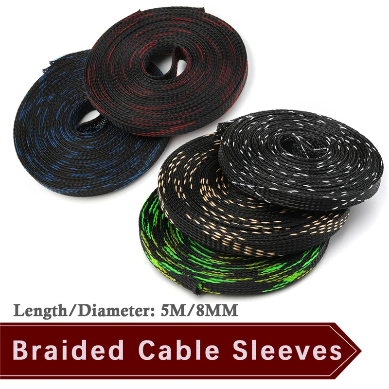 5M 8mm Insulation Braided Sleeving Tight PET Expandable Wire Cable Protecting PET Braided Cable Sleeve High Density