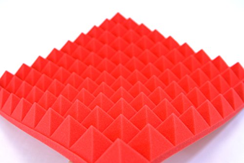Car Insulation UK Pannelli in Schiuma fonoassorbenti piramidali, 500 mm x 500 mm, Isolamento Acustico dello Studio, Confezione da 4, Rosso