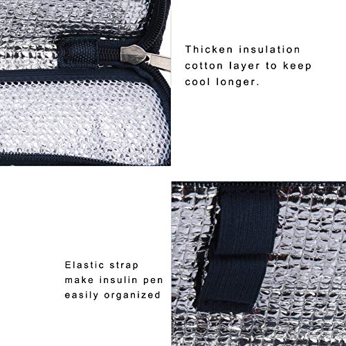 【Tempo di conservazione lungo】 Strato di cotone isolante addensato per mantenere il fresco più a lungo. Questa borsa può contenere due penne per insulina e una piccola tasca può contenere tamponi di cotone e alcol sterile o altre pillole.