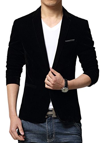 Insun da Uomo, a Manica Lunga Velluto Notch Revers 1 Tasto Blazers Giacca Black 05 58