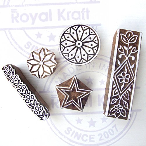 Intagliato Mano Star e Tondo Disegno Legna Blocchi per Stampa (Set di 5)