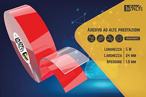 ✅ SENZA FORARE - Il nastro biadesivo trasparente InTALYs, è il tuo migliore aiutante in casa! Adesivo di montaggio forte composto da un gel acrilico trasparente super adesivo. Ideale per fissaggi anche permanenti in casa e in giardino.