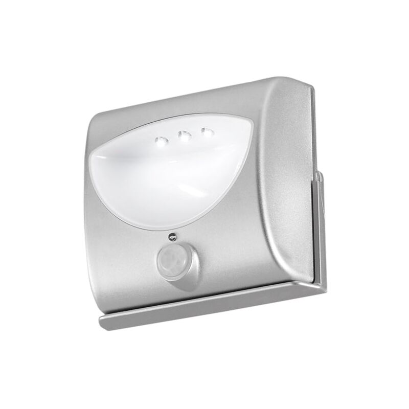 Lampada LED con sensore di movimento in bianco o silver. Colore: Argento Materiale: Policarbonato Tipo sorgente o lampadina richiesta: LED Watt: 0.075 Lumen: 18 Lumen Kelvin: 4000K Grado di protezione da corpi solidi e acqua: IP20 (solo uso interno) Altre informazioni: ;