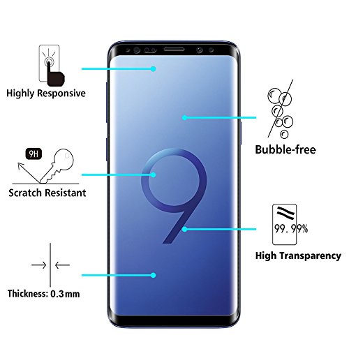 InteCasa [3 Pack] Pellicola Protettiva per Samsung Galaxy S9/S8, Vetro Temperato Tempered Glass Screen Protector, 9H Durezza,Ultra Resistente, Anti-Bubbles per Samsung Galaxy S9/S8- Nero