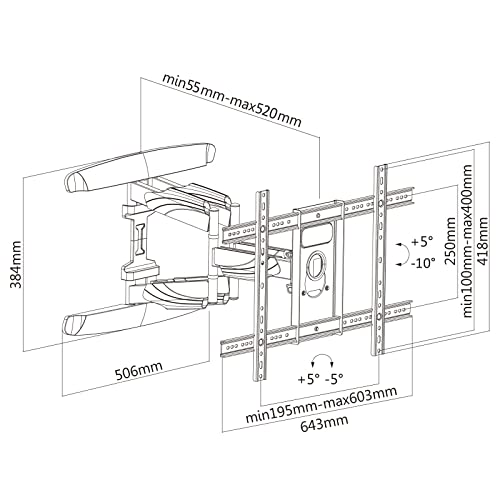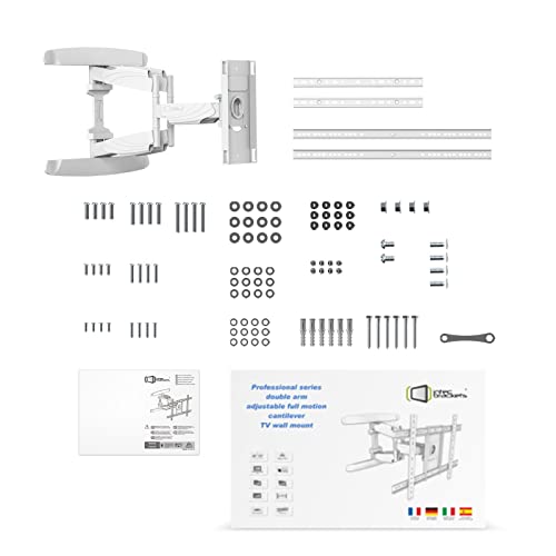 Intecbrackets, staffa da parete professionale per TV con doppio braccio forte e sottile (solo 50 mm di distanza), inclinabile e girevole, con estensione fino a 520 mm, colore;