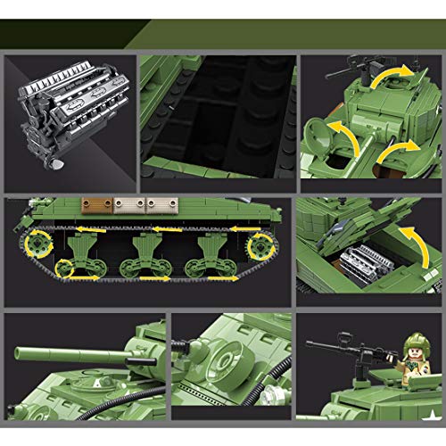Intee V12 Motore Sherman M4A1 Blocchi di costruzione del serbatoio ww2, 726 Pcs di blocchi di costruzione del modello di carro armato Army Tank carro armato cingolato compatibile con Lego