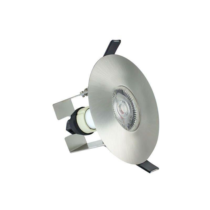 Integral - Protezione per isolamento tondo da incasso a LED ignifugo / Supporto GU10 Nichel satinato IP65 | Finitura: nichel satinato | Materiale: acciaio