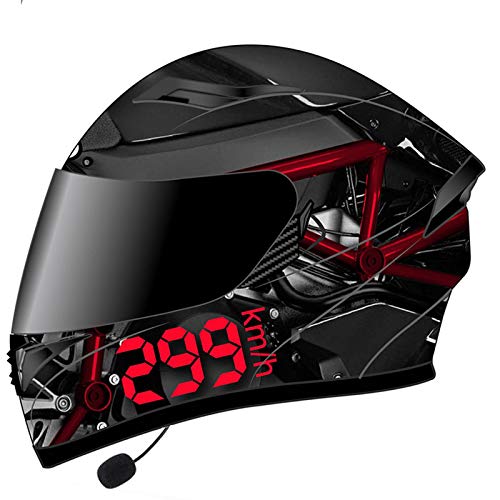 ZLYJ Integrale Caschi Bluetooth Integrato Modulare Moto Casco, Apribile Caschi Motociclo, Anti-Collisione Doppia Visiera Caschetti Integrali, para off-Road Racer Biker, ECE Omologato B,XL