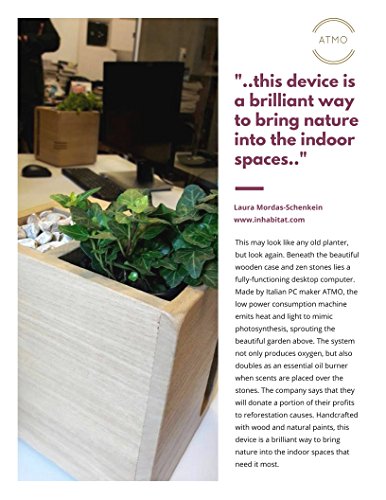 ATMOPC è provvisto di una pianta la quale è stimolata a crescere. Questa pianta può essere ospitata nel suo comparto circa due mesi al termine dei quali è necessario un rinvaso. ATMO ospita circa 4 piante all'anno. Questa tecnologia attecchirà come archetipo per il futuro potremo produrre un fenomeno di riforestazione casalinga. Potremo produrre nuovi piccoli e grandi polmoni verdi.Utilizziamo inoltre legname proveniente da foreste amministrate ecocompatibilmente.