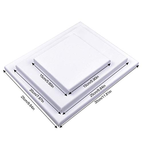3 Pzi Tele Intelaiate per Pittura Tele Prestirate per Artisti Telaio Arte con Tela 100% Cotone Prive di acidi Bianca Grana media Per Dipingere, ad Acrilici, Pittura ad Olio 15x15, 20x25, 25x30 cm