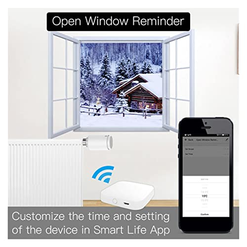 Rilevamento della finestra aperta: quando la temperatura ambiente scende improvvisamente in temperatura. soglia, la valvola chiuderà per 15 minuti. Dopo che, se la temperatura della stanza. è ancora inferiore alla temperatura. Soglia, manterrà questa modalità.besides, è facile leggere il display digitale con la temperatura di Celsius.