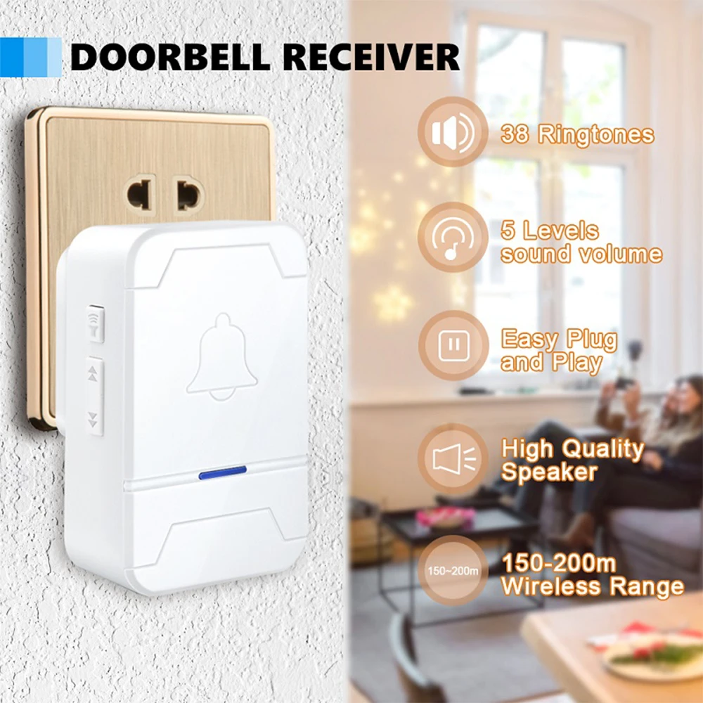 Intelligent Wireless 150M IP55 Waterproof Doorbell Transmitter 38 Ring Tones Household Remote Control Music Doorbell Receiver
