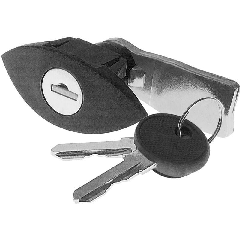 · Blocchetto di chiusura per pannelli · Con serratura di sicurezza a chiave · Dotato di due chiavi · Fissaggio con clips (spessore 0,8-1,8 mm) · Colore Nero RAL 9004 (nero)