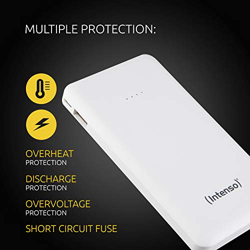 Intenso Powerbank S10000, Caricabatterie Portatile, 10000mAh, con Cavo microUSB Integrato, Bianco