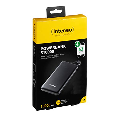 Intenso Powerbank S10000, Caricabatterie Portatile, 10000mAh, con Cavo microUSB Integrato, Nero