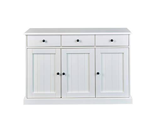 Inter Link Credenza in legno massiccio di pino, bianco, a tre sportelli