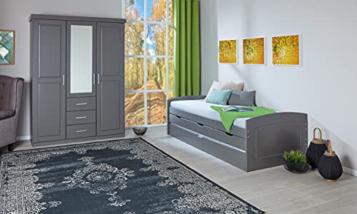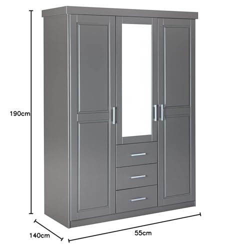 Inter Link Norwin Armadio 3 Ante Grigio, Legno Pino, 140 x 55 x 190 cm
