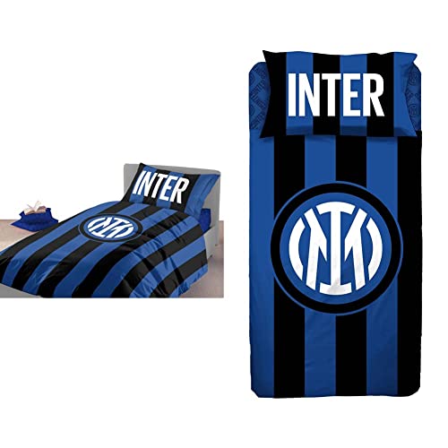 Inter F.C Parure Copripiumino Singolo, Logo Nuovo, Prodotto Ufficiale & F.C Completo Lenzuolo 1 Piazza | Logo Nuovo | Prodotto Ufficiale