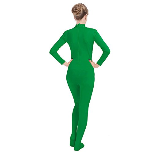 Tuta intera aderente unisex in Lycra, tuta a calzamaglia con collo alto, maniche lunghe e piedi, costume, tuta intera in elastan, Emerald Green