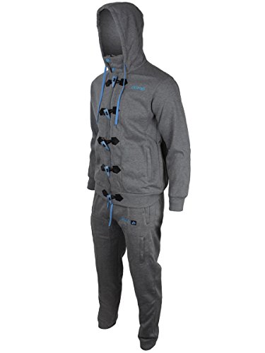 Tuta intera da uomo/ragazzo, in cotone felpato, giacchina con cappuccio, per allenamento o jogging Marl Grey / Blue (Vanguard) X-Large