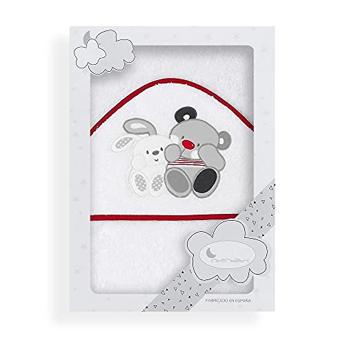 Interbaby Asciugamano con cappuccio per neonato AMIGOS in bianco e rosso - 560 g