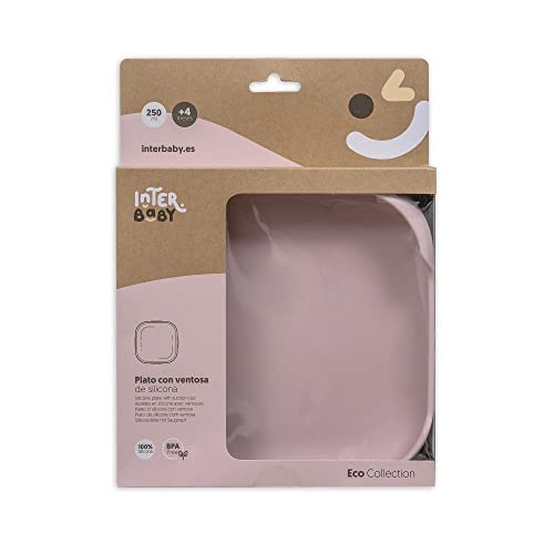 Interbaby Piatto piano in silicone rosa con ventosa per bambini