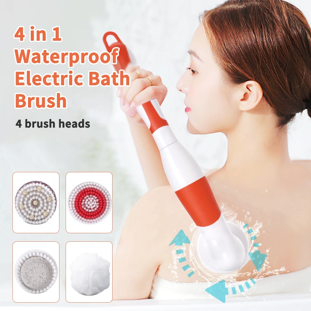 Interchangeable Electric Bath Brush Massager Back-Rubbing Brush Long Handle Spinning Body Cleaning Spa Massage Shower Brush Sets