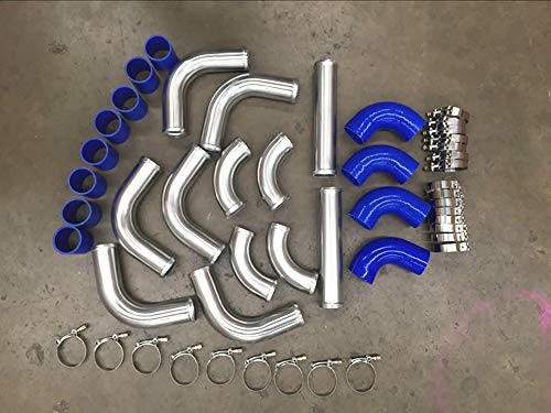 Kit di tubi intercooler turbo universali in lega di alluminio da 76 mm + tubi blu