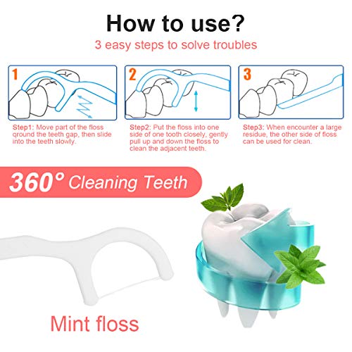 【300pcs Pratici Bastoncini Filo Interdentale】Con filo interdentale a forcella particolarmente progettati ergonomicamente, è possibile pulire delicatamente gli spazi interdentali difficili da raggiungere. Aiuta a rimuovere la placca dalle aree tra i denti che non vengono pulite da uno spazzolino da denti. A causa del piccolo supporto, il filo interdentale monouso è stretto, in modo che venga eliminato e non ci sono problemi separati / strappati.