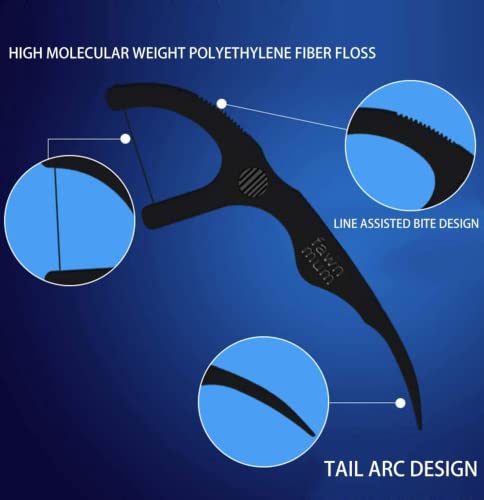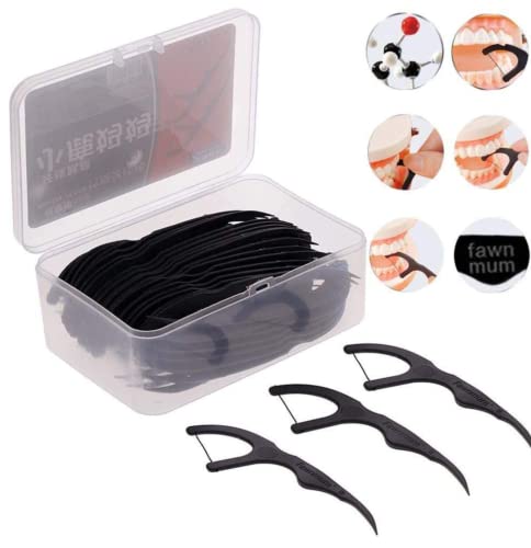 Filo interdentale forcella effetto pulizia stuzzicadenti archetto dentale gusto leggero menta o senza (Nero, 50)