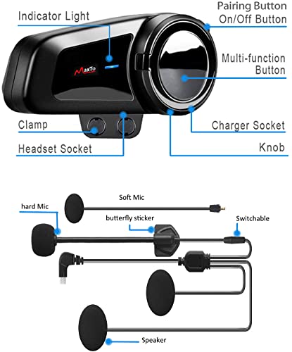 【Qualità garantita & Con speaker e microfono inclusi】: Questo citofono per moto ha una garanzia di qualità di un anno.Con speaker e microfono inclusi, esso fornisce un suono di alta qualtià con un'avanzata tecnologia di eliminazione del rumore. I nuovi microfoni intercambiambili consentono la scelta tra un microfono a stecca per caschi a volto aperto o con visiera estraibile (convertibili), o un microfono a bottone per caschi