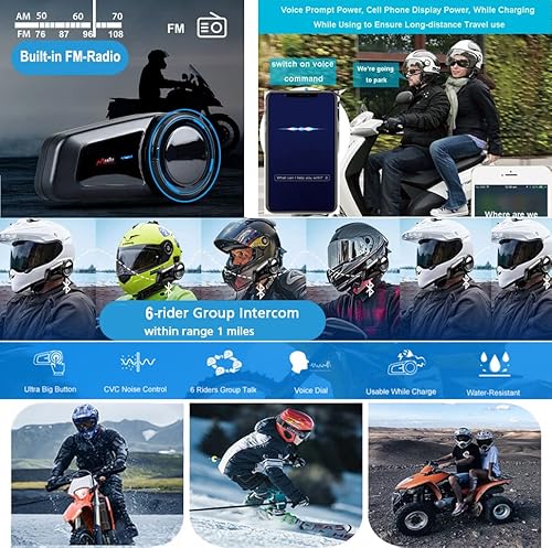 M2 Interfono Moto Con Radio Fm, Bluetooth 5.0 auricolare per casco supporta 6 persone che parlano allo stesso tempo entro 1000 metri CVC/CSR/Sistema di Comunicazione Universale per Moto Da Cross