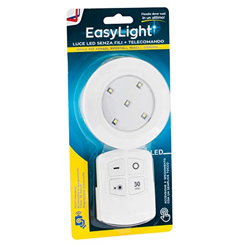 Intergross Easy Light Luce LED Senza Fili Colore Bianco a batteria e telecomando (kit 1 luce + 1 telecomando)