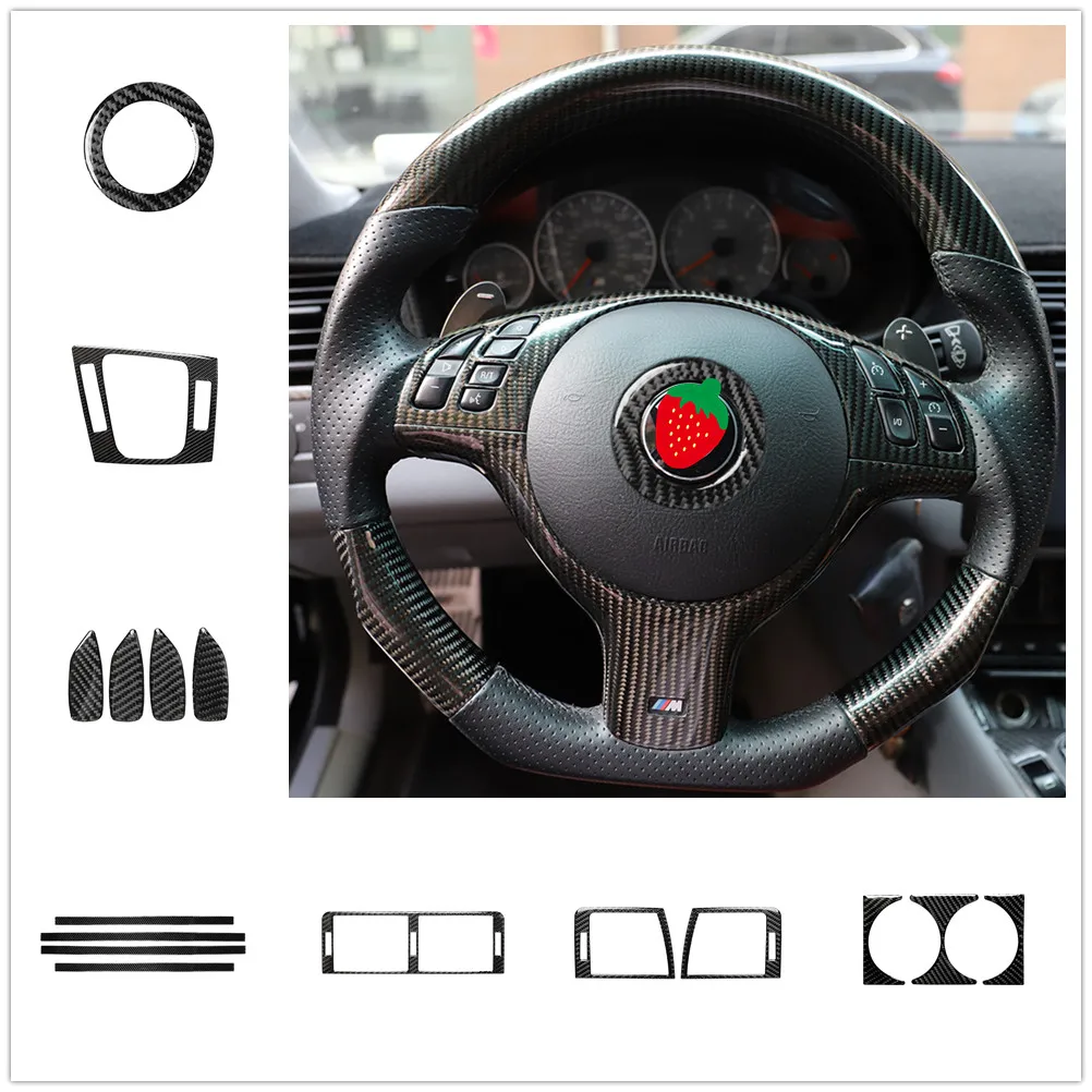 Interior Carbon Fiber Car sticker Styling For BMW E46 M3 1998-2005 horn Air outlet steering wheel logo Threshold bar Gear Door