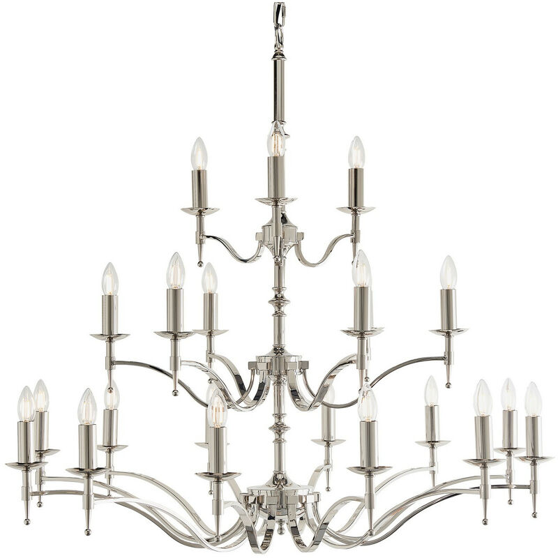 Interiors - Lampadario a 21 luci con finitura in nichel lucido, E14 | Finitura: nichel lucido | Classificazione IP: IP20 | Altezza (cm): 400 | Altezza min (cm): 110 | Altezza massima (cm): 400 | Diametro (cm): 108 | Numero di luci: 21 | Tipo di lampada: E14 | Lampadina: incandescente | Dimmerabile: Sì | Potenza (max): 40 | Lampadina inclusa: no
