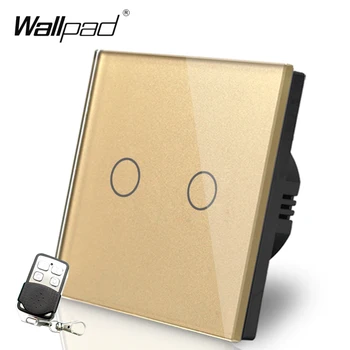 2 Gang Intermediate Remote Wallpad Luxury Gold Touch Crystal Glass 2 Gang 2 Way RF433 Remote Control Electrical Button Switches