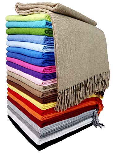 STTS International Coperta in Cotone con Frange, Plaid, 100% Cotone, 130 x 170 cm, Rio, colore: beige