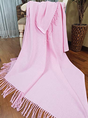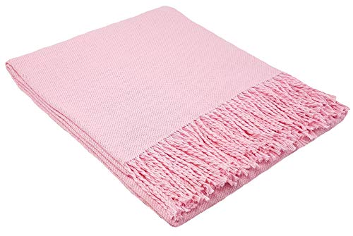 STTS International Coperta in Cotone con Frange, Plaid, 100% Cotone, 130 x 170 cm, Rio, colore: rosa