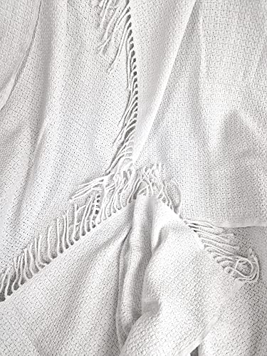 STTS International - Coperta in cotone, molto morbida, plaid, disponibile in diversi colori, modello “Malta”, 140 x 200 cm, colore: bianco (A)