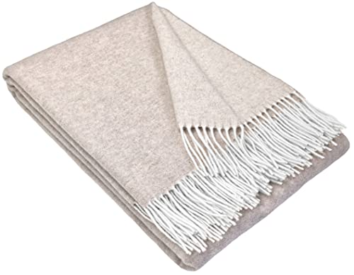 STTS International Coperta in lana merino - Cashmere - Mix 140 x 200 cm molto morbida plaid Faro beige-bianco (Duo)