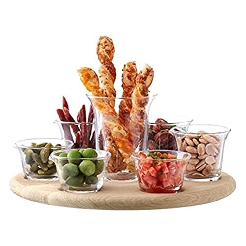 LSA International Serve Tapas Set con Base in Legno di Quercia, Vetro, Trasparente, 34 cm