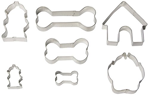 Set di 7 formine per biscotti a forma di cane e osso, in acciaio stagnato.