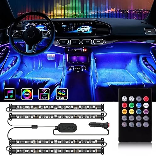 Kit Led Interni Auto RGB Illuminazione Luce Ambiente Abitacolo Auto Strisce LED 9 Colori con Telecomando Controllo Colori e Modalità Illuminazione 4 Pezzi 22 cm Atmosfera Personalizzata