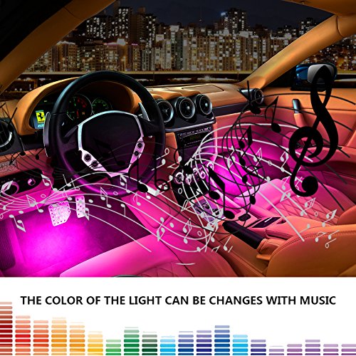 Interni auto striscia LED luce - 4pcs DC 12 V 7 color 72 LED RGB Multicolor Music Light strip kit con suono attivo e funzione telecomando wireless [incluso Caricatore auto]
